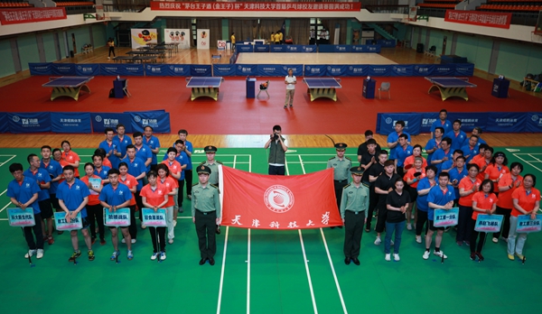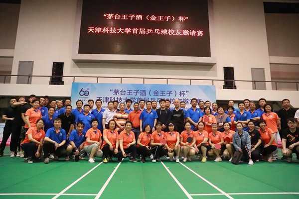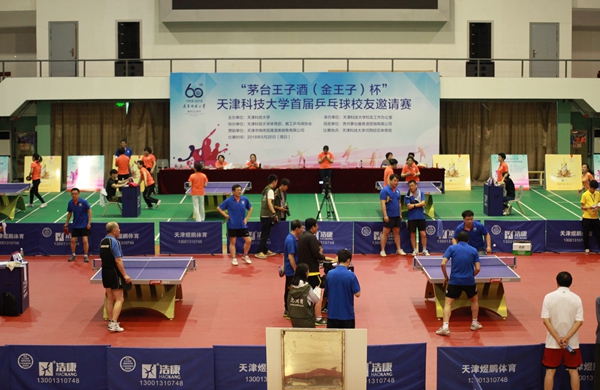 用活力书写青春,用乒乓见证友谊。为迎接我校甲子校庆,5月20日,“校友回家系列活动”之“茅台王子酒(金王子)杯”天津科技大学首届乒乓球校友邀请赛在我校河西校区体育馆举行。校党委副书记、校长韩金玉,副校长路福平,老领导张建国、付玉成,贵州茅台酱香酒营销有限公司天津省区经理胡崇伟,优秀校友、乒乓球世界冠军郝帅以及校友办、体育部、团委等相关部门负责同志出席开幕式。60余名校友和师生报名参赛,体育馆中新老聚首,欢声笑语,其乐融融。