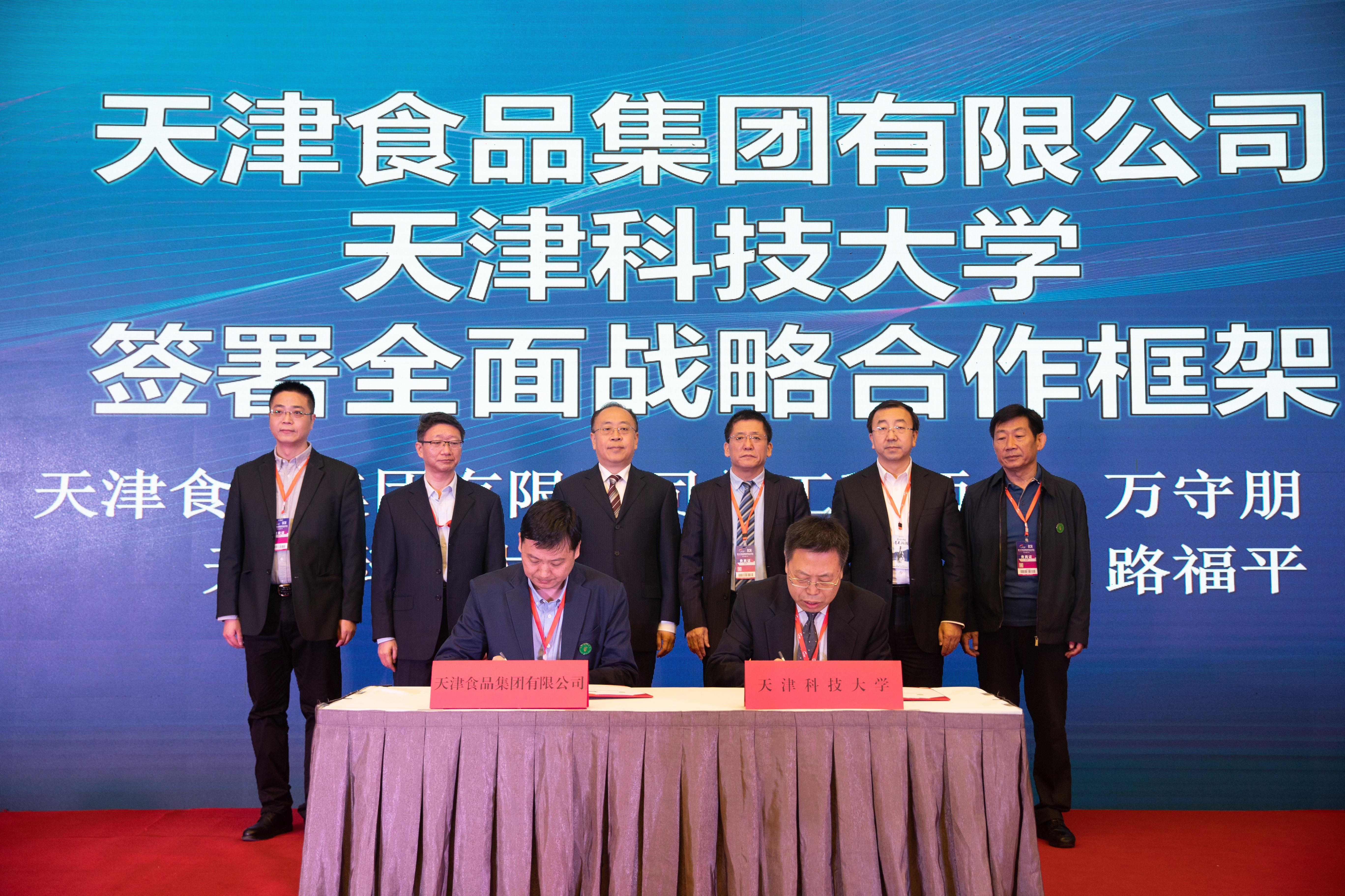 此外,会上我校与天津食品集团签署全面战略合作协议,韩金玉同志与张勇同志共同为“天津食品集团-天津科技大学联合研究院”揭牌。会议后半程,路福平同志以“校友工作与共同发展”为题,围绕校友现象分析、校友工作开展重要性、校友与母校协同发展等几个方面进行主题报告,号召广大校友共同探索天津校友经济发展模式,打造“天科智汇”品牌。同时,陈国军、马东、佘刚三位糖酒行业校友代表分别从自身行业发展角度浅谈发展经验与见解,并以主题报告的形式与校友企业交流。