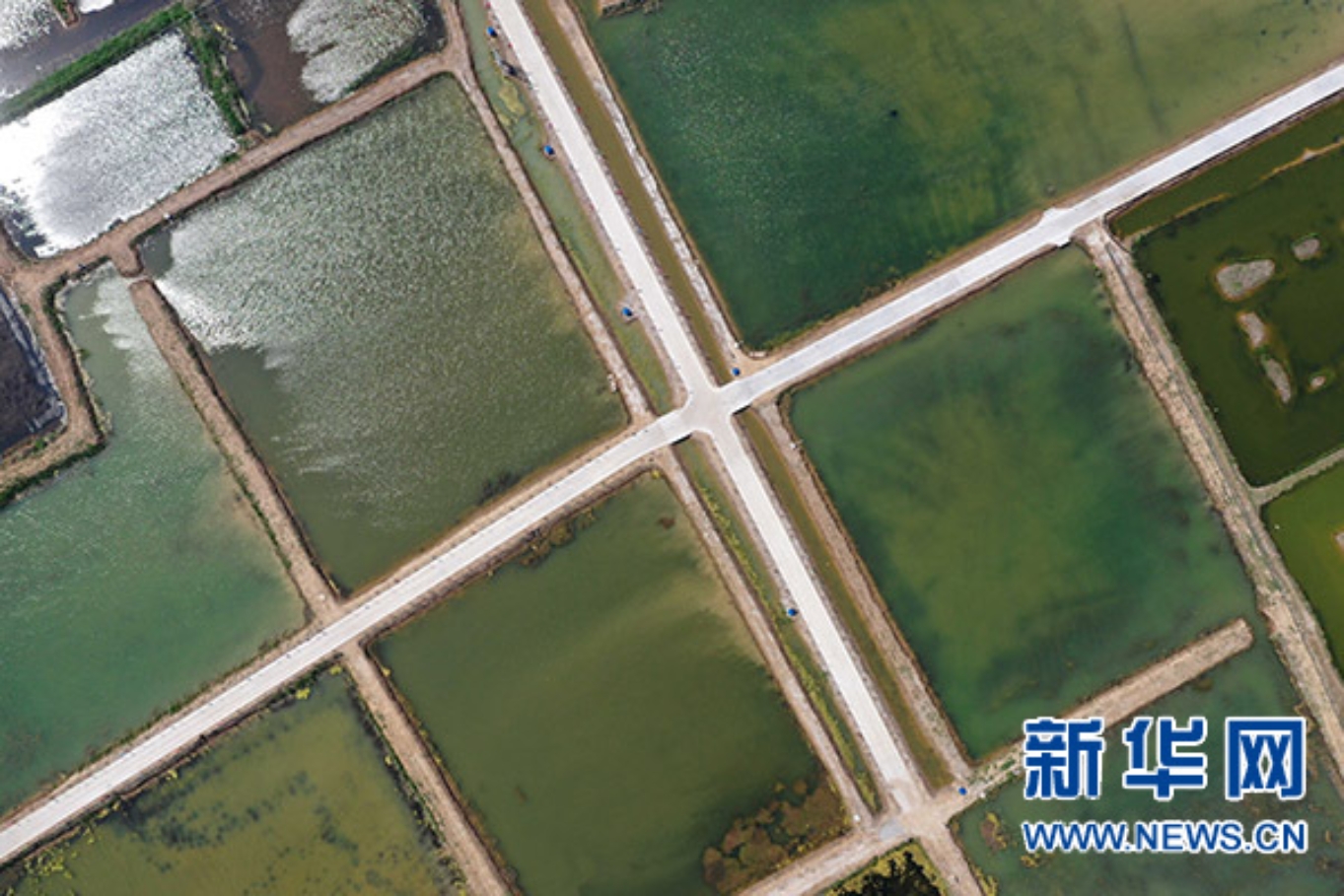 这是2020年4月28日拍摄的河南省濮阳市范县龙王庄镇龙东小龙虾基地(无人机照片)。新华社记者 冯大鹏 摄