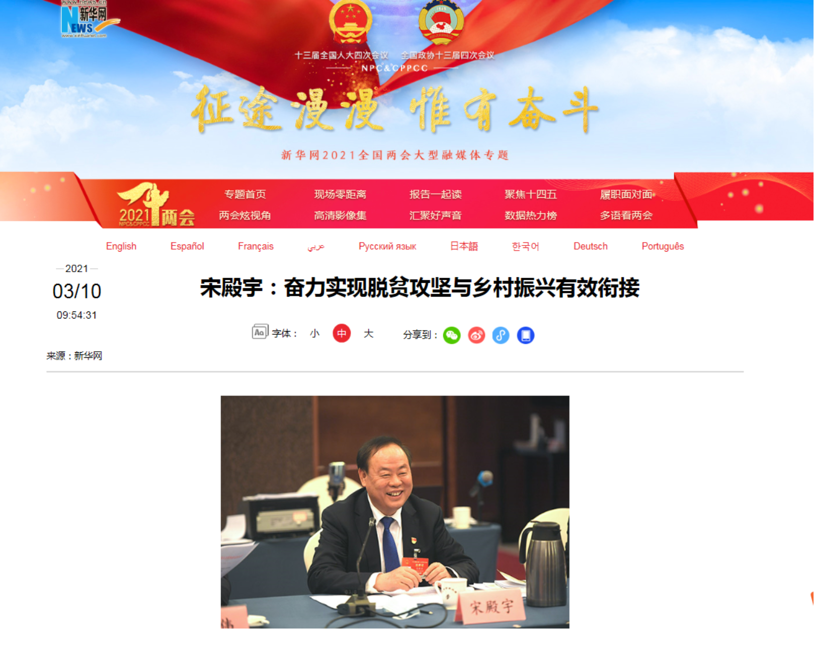 3月8日《人民日报》第10 版《两会特刊》“推动高质量发展”专栏刊发了宋殿宇关于做好扶持政策的有效衔接的建议。近日,新华网刊发宋殿宇关于《奋力实现脱贫攻坚与乡村振兴有效衔接》的专访报道。