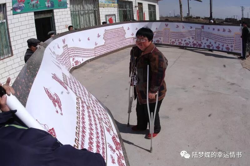 陆梦蝶,1973年出生于宁夏永宁县胜利乡陆坊村八队,现年45岁。自15岁患关节疾病,不断复发导致一级肢残左眼失明,陆梦蝶,45岁,因病致一级肢残左眼失明。曾入选“中国好人榜”,获得过第22届书博会“十大读书人物”“感动宁夏”“道德模范”“自强模范”“银川市十大杰出青年”等荣誉。剪纸作品获得过“第四届国际剪纸艺术展金奖”等,被评为宁夏自治区级非遗剪纸项目传承人,出版了《剪爱——陆梦蝶剪纸作品集》、《梦随蝶舞》、《幸运情书》、《偶是农民》和《水晶绿》5部书。