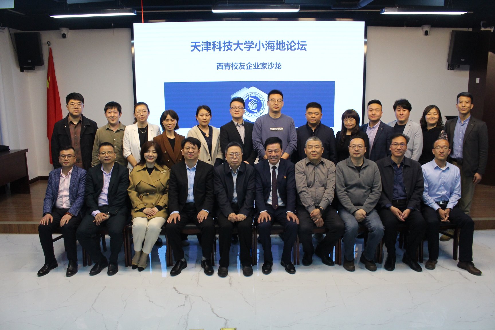 天开高教科创园开园在即,为助力天津校友经济发展,4月1日,在天科大基金会党支部成员的前期沟通与组织下,天津科技大学“小海地”论坛——西青校友企业家沙龙在天津江苏商会驻地三楼会议室召开。校党委副书记、校长路福平,北洋海棠基金创业知本社发起人、运营负责人、天津新华同力管理咨询有限公司董事长孙卫军,天津国商人集团有限公司董事长林谷春,天津贝乐建筑装饰工程有限公司总经理贾晓文,天津名一家商贸有限公司总经理佘刚等近二十位企业家校友参会,校友工作办公室主任文峰以及部分学院代表参会。